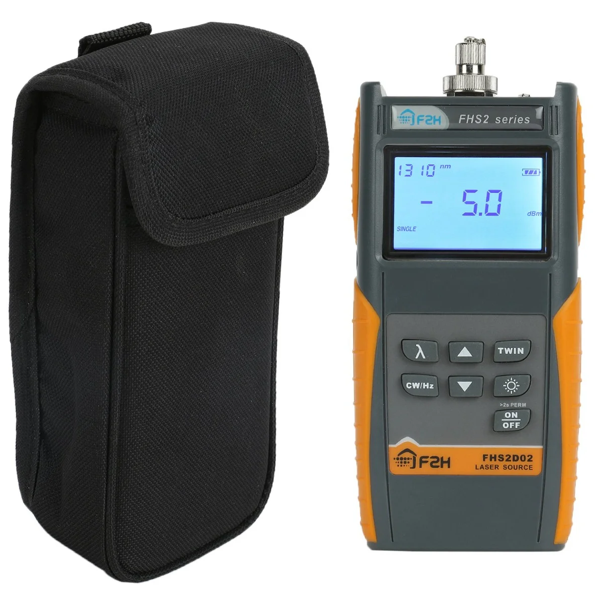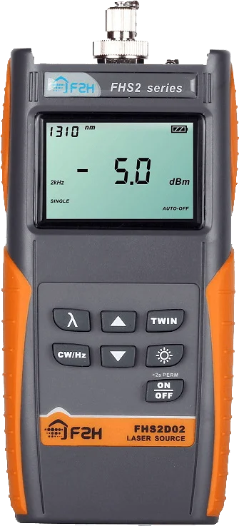 Grandway FHS2D02F – джерело оптичного випромінювання для тестування ВОЛЗ. Пристрій випромінює сигнал у безперервному або модульованому режимах, забезпечуючи високу стабільність, передавати разом з сигналом, що випромінюється, зашифрований цифровий ідентифікатор автоматичного визначення довжини хвилі 1310 і 1550 нм для вимірювача потужності FHP2. Цей функціонал скорочує час перемикання між довжинами хвиль і зменшує ймовірність помилки при вимірі оптичної потужності. Джерело оптичного випромінювання має невеликі габарити і відмінно підходить для роботи всередині приміщення та польових умовах. Прилад комплектується змінними оптичними конекторами FC/PC, SC/PC.